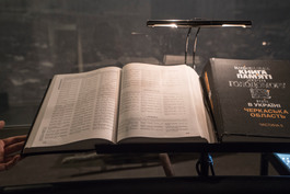 UKRAINE. Kyiv. 2016. Holodmor Museum. One of several books listing...