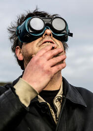 GB. North Yorkshire. 2015. David Shayler watching a solar eclipse...