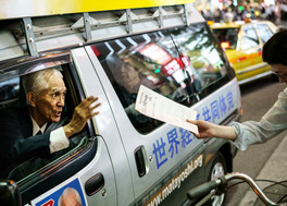 JAPAN. Tokyo. 2016. Jesus Matayoshi hands out election flyers....