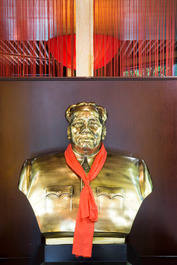 China. Guangzhou. 2016. Bust of Mao outside a restaurant.