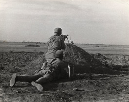 CHINA. Tai'erzhuang. April, 1938. Two soldiers behind a mount...