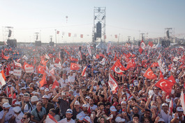 TURKEY. Istanbul. 2017. People wave flags during Justice Meeting...