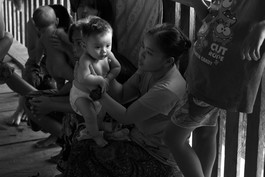 Malaysia. Sarawak. 2018. Indigenous land rights. Layu feeds her...