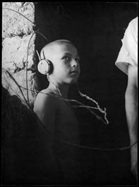 HUNGARY. Town of Debrecen. Child listening to Radio Budapest,...