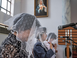 DPR Korea. Pyongyang. 2015. Choir at Changchung Roman Catholic...
