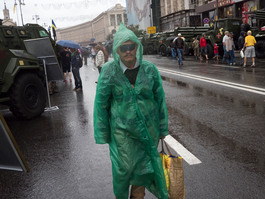 UKRAINE, 2017/8. Kyiv. Ancient Ukrainian in war museum.