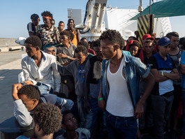 ITALY. Catania. July 14, 2017. Men and women wait to disembark...
