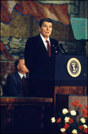 SOVIET UNION. Russia. Moscow. 1988. Ronald REAGAN giving a speech...