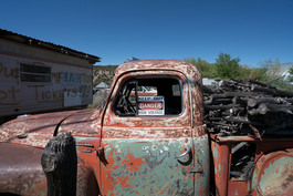 USA. New Mexico. 2017. Truck, abandoned gas station. Highway...