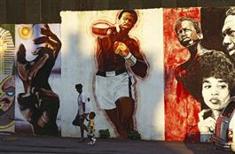USA. Atlanta, GA. 1995. "Black Atlanta" mural with Muhammad Ali...