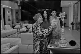 USA. McAllen, TX. 2017. Laura's son behind a photo album with...