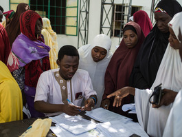 NIGERIA. Maiduguri. 2017. Women widowed by the conflict register...