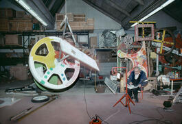 SWITZERLAND. Swiss sculptor Jean TINGUELY working in "La Verrerie"....
