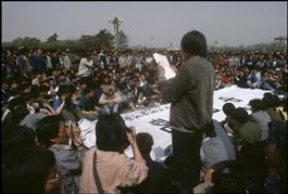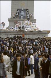 Beijing. April 17-20. Students demonstrating in Tian' anmen Square....