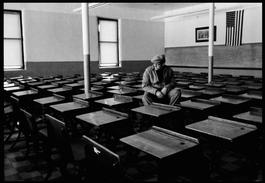 USA. Indiana. Fairmount. 1955. James DEAN in his former schoolroom....