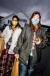 USA. Hudson Valley, New York. April 20, 2020. People with masks...