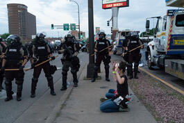 USA. Minneapolis, Minnesota. May 31, 2020. Police guard arrested...