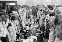 POLAND. Gdansk. Lenin Shipyard strike. Lech Walesa signing autographs...