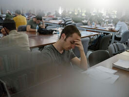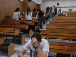 TURKEY. Ankara. 2019. Students study before their exam in Ankara...