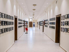 TURKEY. Ankara. 2019. Student look at photos of the university's...