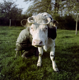 FRANCE. Normandy. 1947. A farmer wearing a discarded US Army...