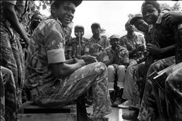 MOZAMBIQUE. Inhambane region. 1983. A group of soldiers stand...