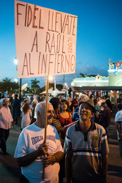 USA. Miami. Members of the Cuban community demonstrate outside...