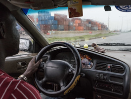 Ghana. Tema. 2016. Traffic on road to Tema port.