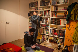 BELGIUM. Brussels. 2016. Zafar, Abbas and Turyali in their room...