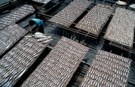 MACAO. Macao`s famous dried fish prepared on the island of Coloane....