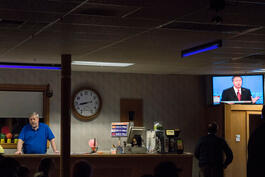 USA. Manchester, NH. 2016. At a bowling alley during the Republican...
