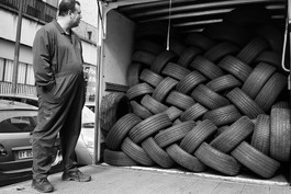 France. Paris. Old tires in a truck. 2016
