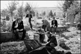 TURKEY Cizre. March 5, 2016. Kurdish men pray by the gravesite...