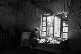 Cizre, TURKEY. March 4, 2016. A Kurdish woman surveys the damage...