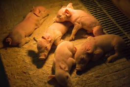 France. Brittany. Finistère. Lennon. Playful pigs being fattened...