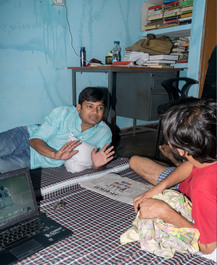 INDIA. Delhi. 2016. Kanhaiya Kumar working in his room.
