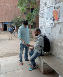 INDIA. Delhi. 2016. Kanhaiya Kumar and his friends sharing a...
