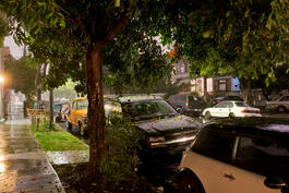 USA. Los Angeles, CA. 2016. Street in front of home of Luis Hernandez,...