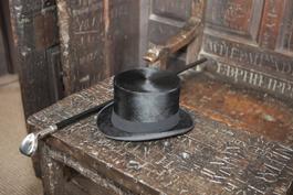 GB. England. Harrow School. Harrow Speech Day. A hat and cane...