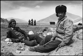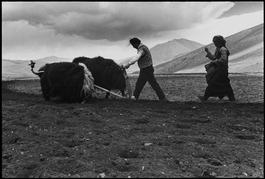 TIBET. Xigaze. 1999. Wife rousing her husband to harvest wheat....