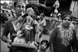 The festival of Durga Puja honours the goddess Durga, an avatar of Kali. For five days, the life of the city is suspended around its celebration. Monuments of bamboo and cloth are erected all over the city to house statues of the goddess. Surrounded by Ganesh, Laxmi and Karathik, Durga, the virtuous, spears Asur, the villain. A whole neighbourhood of the city, Kumartoli, is dedicated to the manufacture of the gods. They are made by hand, out of mud spread on bamboo frames covered with hay.The festival over, a joyous escort of men and women, dancing to the thump of drums, takes the goddess to the...