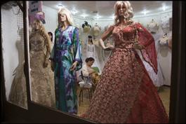 TUNISIA, Kairouan. Shop selling traditional outfits.