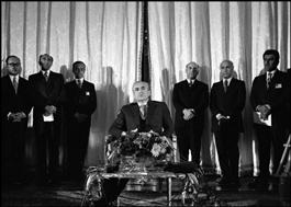 IRAN. Tehran. 1977. Courtesans bow to Shah Mohammad Reza PAHLAVI...