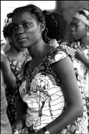 ZAIRE. Kinshasa. Zairian girl wears a dress with the portrait...