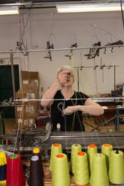 GB. WALES. Ammanford. Corgi Hosiery Ltd. Samantha Davies hand...