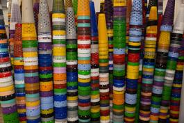 UK. WALES. Abergavenny. Alison Tod milliner. A mountain of hat...