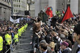 U.K. ENGLAND. April 2009. City of London. Protestors at time...