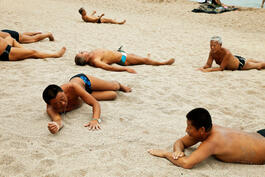 CHINA. Shandong Province. Qingdao. People enjoying the Beach....