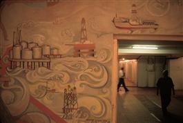 The man made island of Neft Baslani (Oily Rocks). Inside worker...