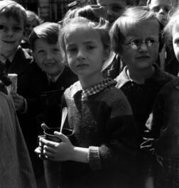 After the Second World War, Chim was assigned by UNESCO and UNICEF to shoot and document the war's effects on children. These images became part of the posthumous exhibit, "Chim's Children." The sympathetic and compassionate portraits of these small victims of war led a friend to note that, to Chim, wars were an enormous crime against children.
